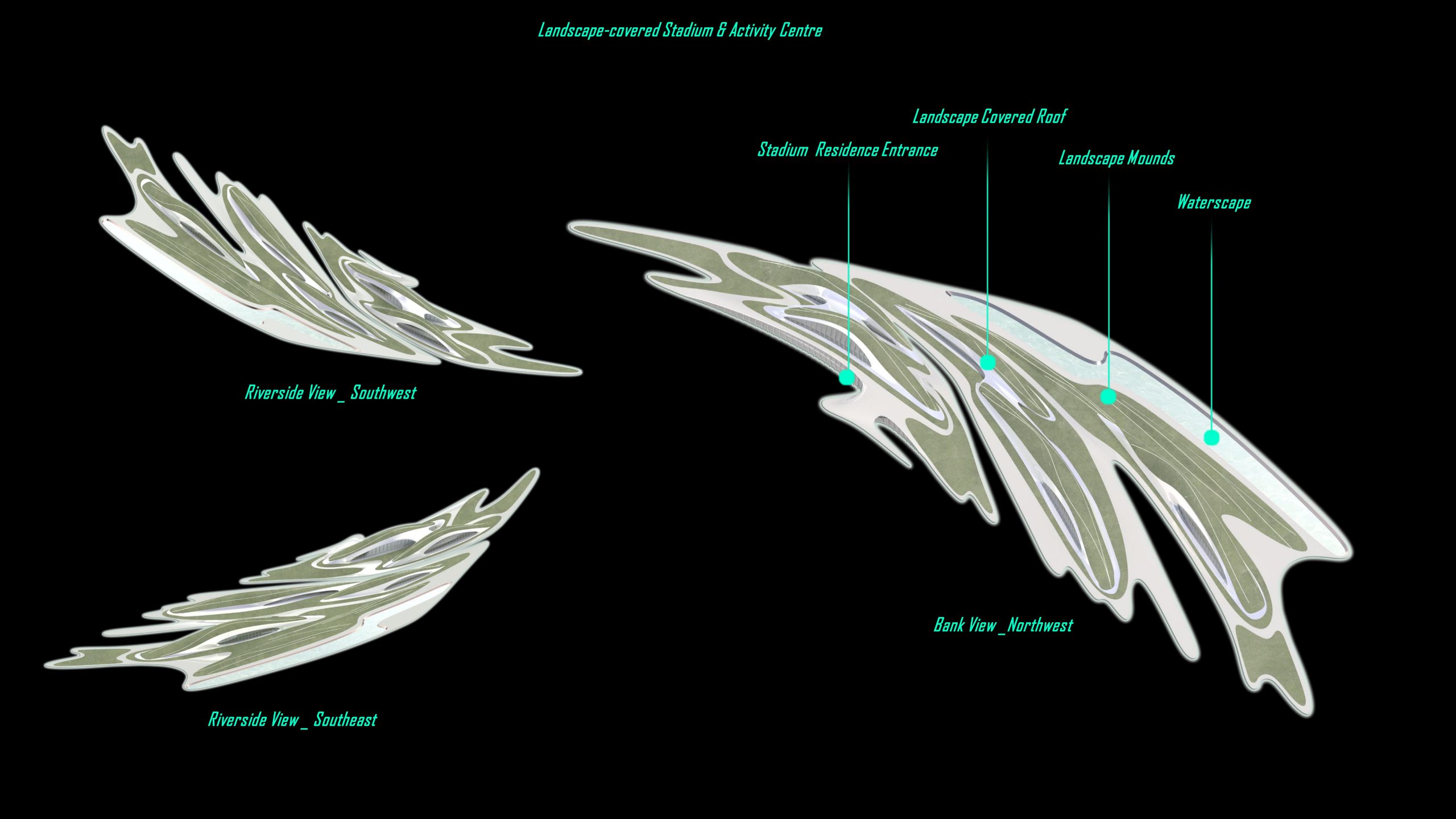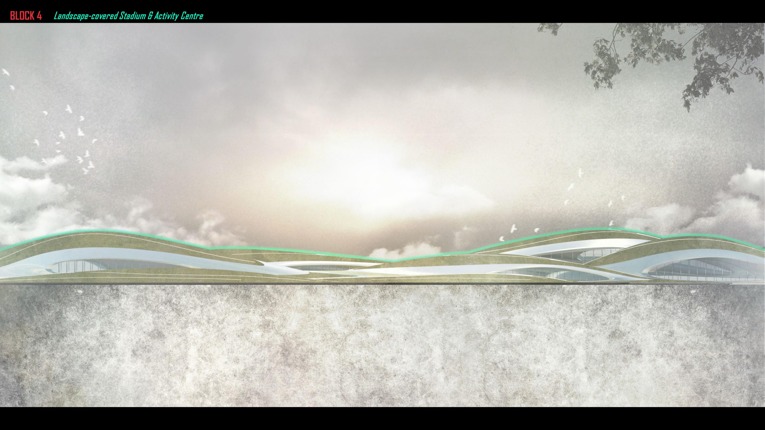 With a similar bridging form of the art and culture but a much more natural gesture, embodying stadiums and other sports fields within to serve the surrounding residents.
