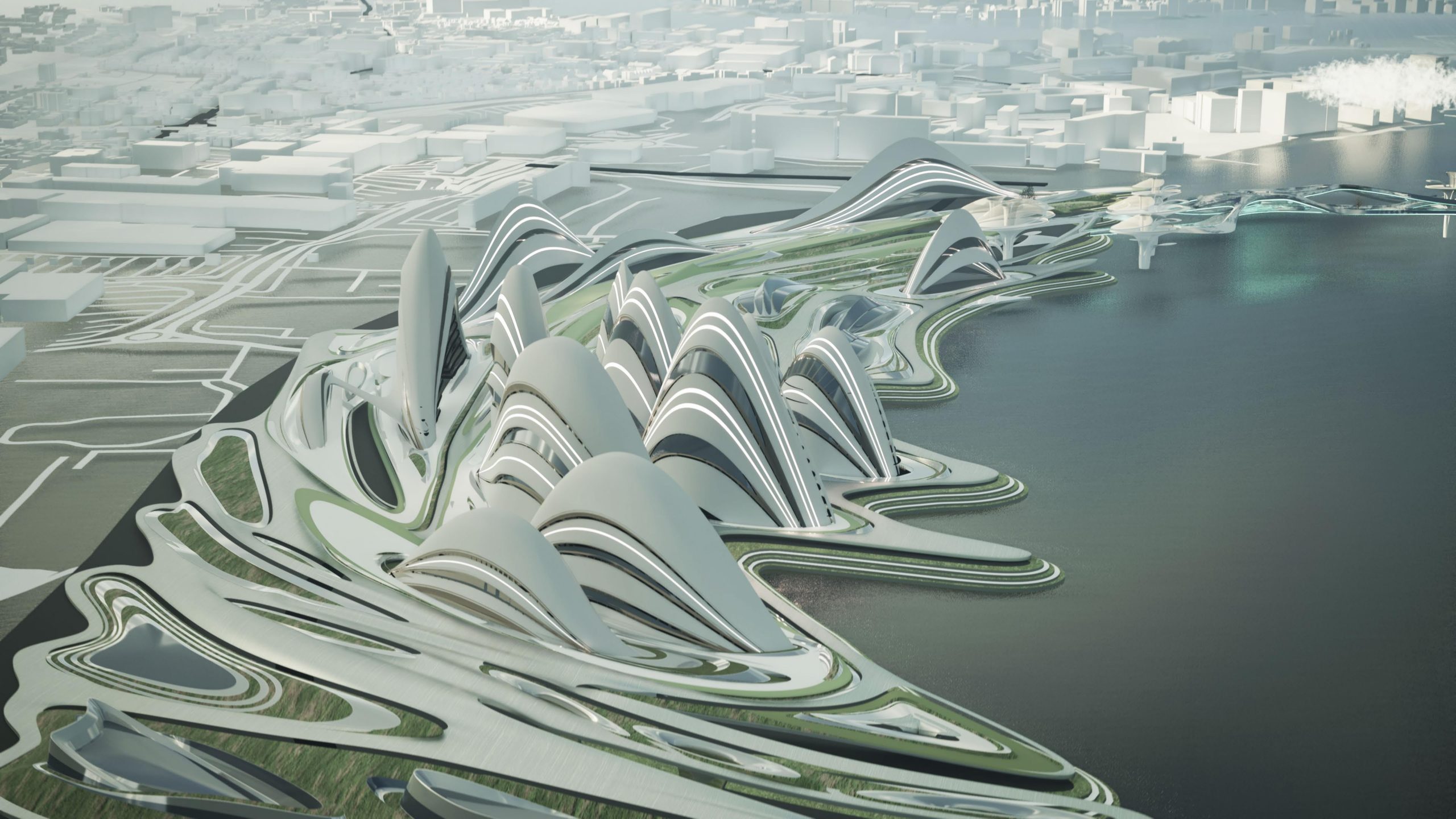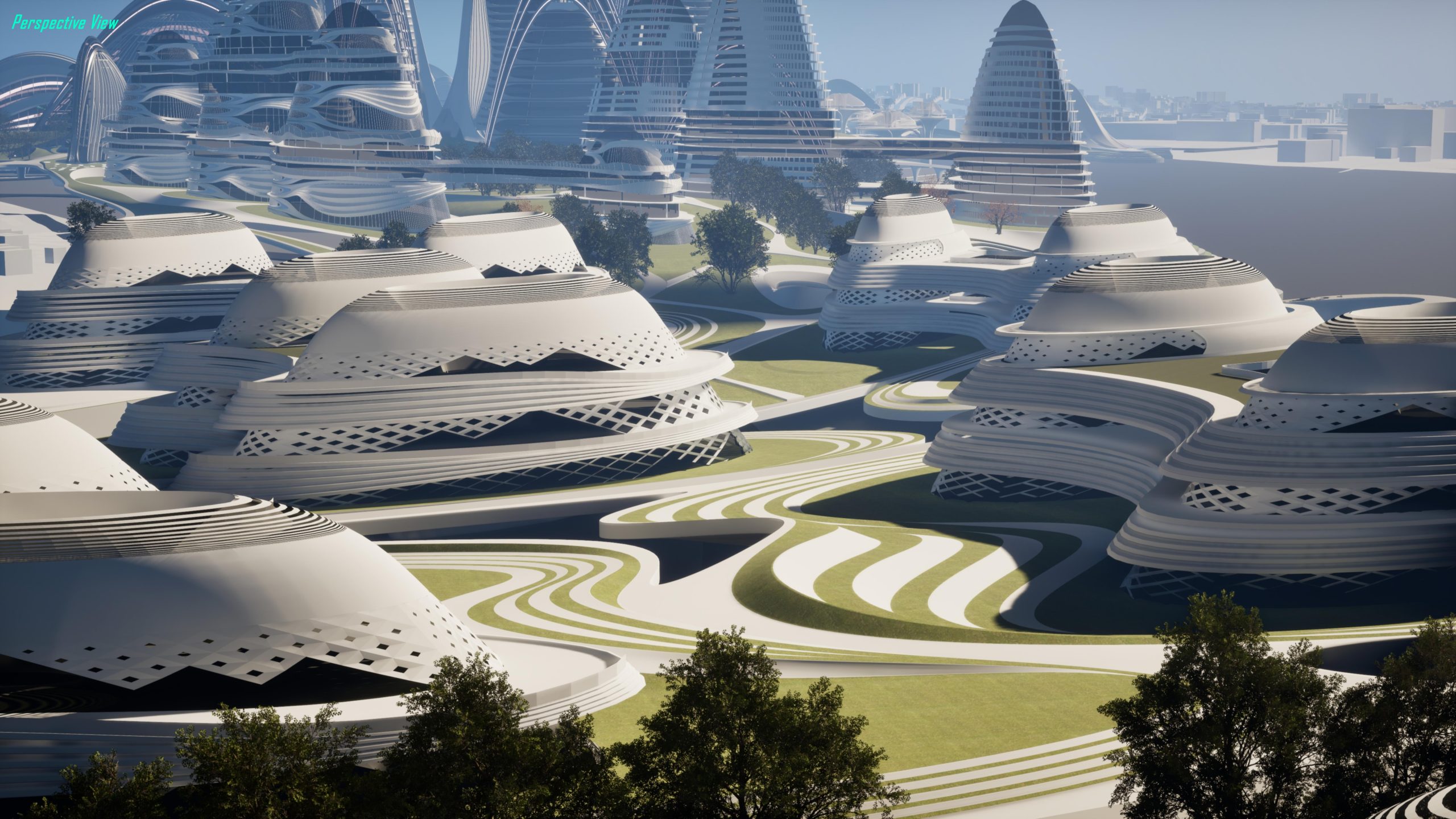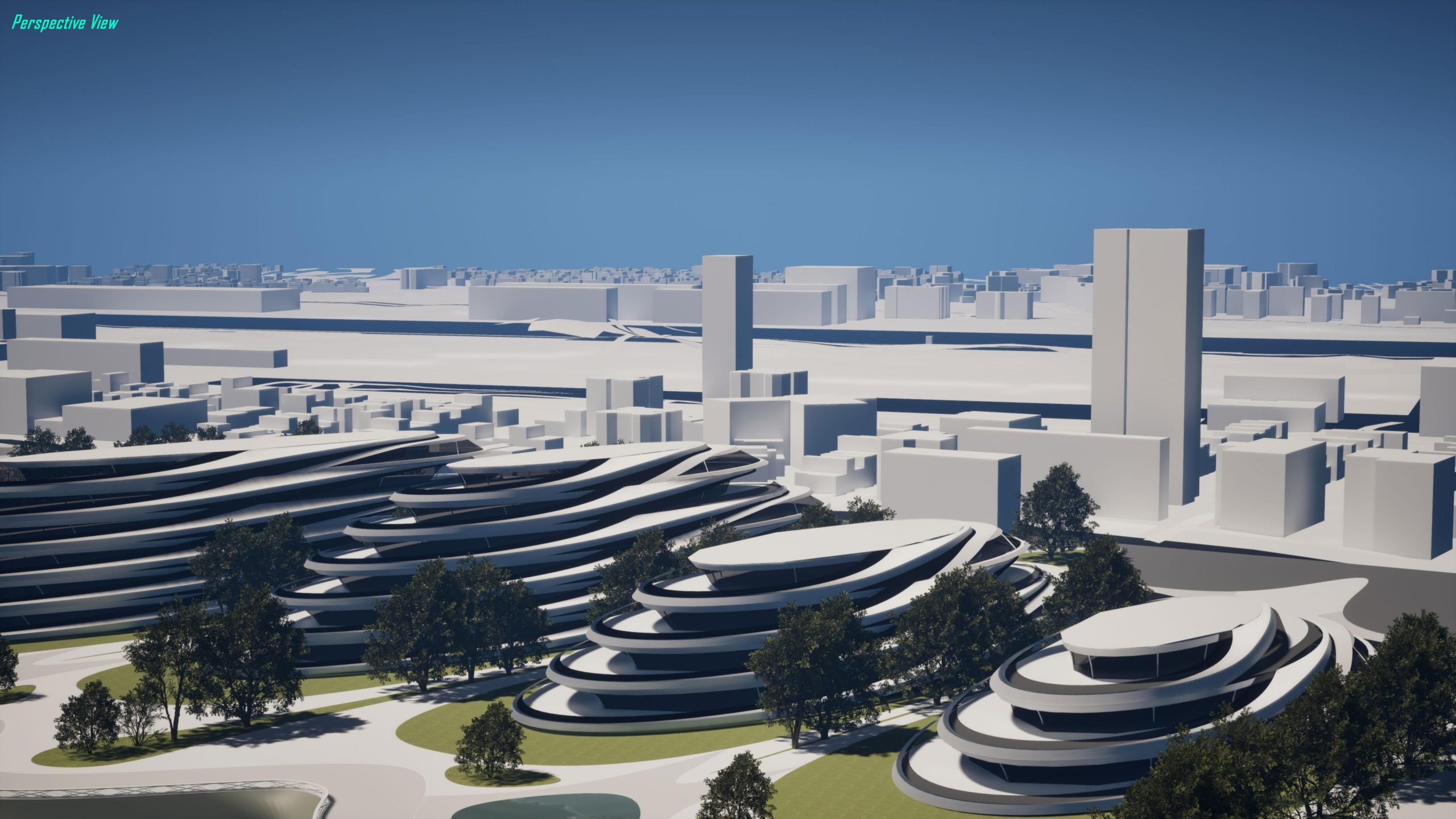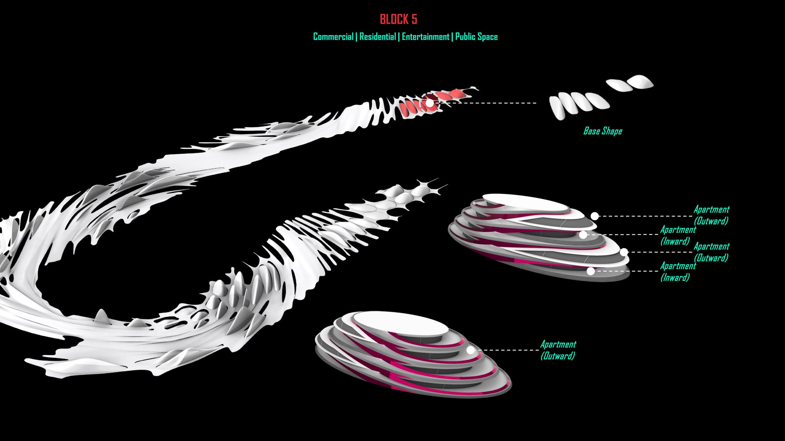 Especially, for the trio of towers at the centre, the ring is likewise creased and emerges from the twirl skin, influencing the greenery and pedestrian walkways while enhancing orientation and spiralling centrally.