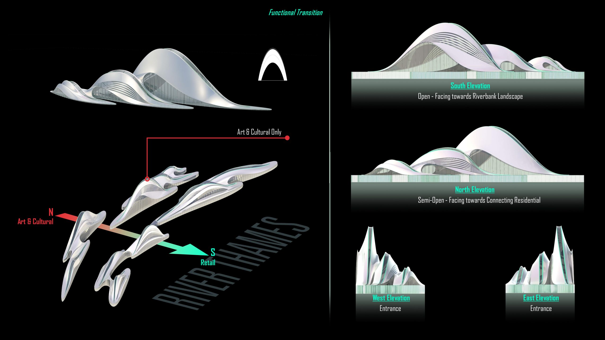 Functional-wise, we want to achieve this gradient: from art and culture gradually shift to retail from north to south, in the meantime reflected in the façade design.